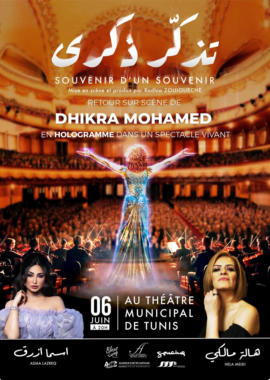 أعلنت السيدة راضية زويوش صديقة الراحلة ذكرى عن تنظيم الحفل بتقنية الهولوغرام بمناسبة الذكرى العشرين لرحيل ذكرى محمد. سيشارك في الحفل أيضًا الفنانتان التونسية هالة المالكي وأسماء الأزرق من أصول مغربية صحبة فرقة موسيقية يقودها المايسترو سمير الصغيّر. سيروي الحفل مسيرة ذكرى الطويلة والثرية منذ بداياتها في تونس، مرورًا بإشعاعها في ليبيا ومصر ودول الخليج.