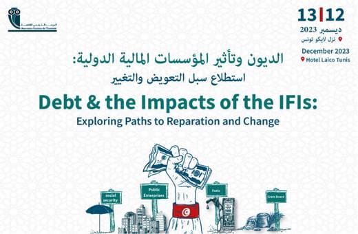 نظم المرصد التونسي للاقتصاد يومي 12 و13 ديسمبر 2023 ندوة حول ملف “الديون وتأثير المؤسسات المالية الدولية: استطلاع سبل التعويض والتغيير” بمشاركة عدد من الخبراء والأكاديميين ومكونات المجتمع المدني.