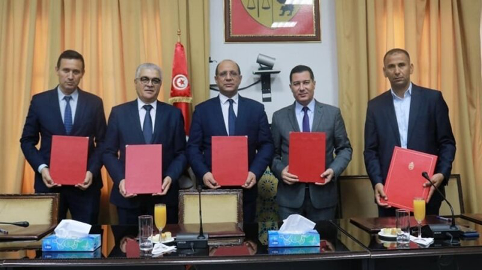 تم صباح اليوم الخميس 30 جوان 2022 بمقر وزارة الشؤون الاجتماعية، توقيع اتفاقيتي تعاون وشراكة بين وزارات الشؤون الاجتماعية والتربية والنقل والمركز الوطني للإعلامية وذلك بإشراف كل من وزير الشؤون الاجتماعية السيد مالك الزاهي ووزير التربية السيد فتحي السلاوتي ووزير النقل السيد ربيع المجيدي والمدير العام للمركز الوطني للإعلامية السيد فيصل السبوعي وذلك بحضور عدد من إطارات الوزارات المعنية.