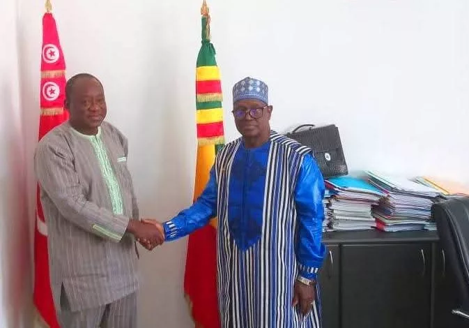 في أجواء يسودها الودّ والأخوّة، استقبل سعادة السيد موسى سورو، سفير جمهورية مالي في تونس، يوم الأربعاء 29 أكتوبر 2025، سعادة السيد أبولينير ساوادوغو، السفير الجديد لجمهورية بوركينا فاسو في تونس، في لقاء مجاملة اتسم بعمق سياسي ودبلوماسي.