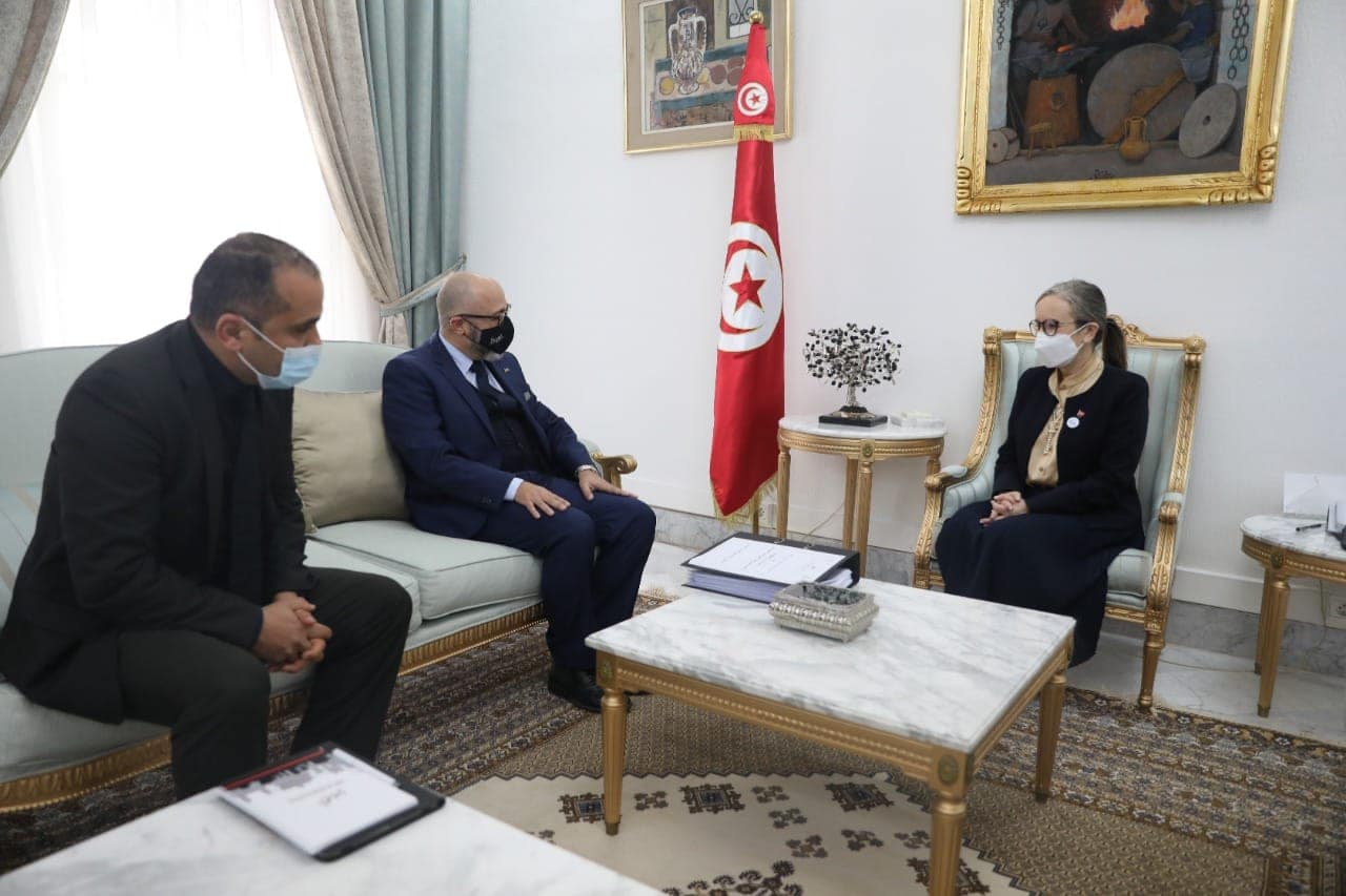 التقت رئيسة الحكومة السيدة نجلاء بودن رمضان اليوم بقصر الحكومة بالقصبة، بكل من رئيس هيئة المهندسين المعماريين السيد محمد صحبي القرجي ونائبه السيد نبيل عمر.