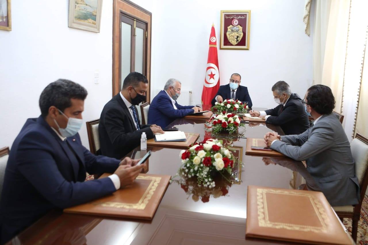 التقى رئيس الحكومة هشام مشيشي مساء اليوم الإربعاء 30 سبتمبر 2020 بقصر الحكومة بالقصبة كل من رئيس حزب قلب تونس نبيل القروي ورئيس كتلة حركة النهضة بمجلس نواب الشعب نور الدين البحيري ورئيس كتلة قلب تونس بمجلس نواب الشعب أسامة الخليفي ورئيس كتلة ائتلاف الكرامة سيف الدين مخلوف والقيادي في حركة النهضة أنور معروف.ويأتي هذا اللقاء في إطار المشاورات والمحادثات التي يجريها رئيس الحكومة مع الأحزاب السياسية والكتل البرلمانية بهدف تنسيق الجهود بين رئاسة الحكومة ومختلف الفاعلين السياسيين للاسراع بمعالجة القضايا الاقتصادية والاجتماعية ذات الأولوية.وأكد رئيس الحكومة في مستهل الاجتماع على أهمية هذا الاجتماع والاجتماعات القادمة مع مختلف مكونات المشهد السياسي في تونس لتوفير مناخ سياسي مناسب لحشد الجهود والتعبئة للانطلاق في الإصلاحات الاقتصادية والاجتماعية الحارقة التي ينتظرها المواطنون والمضي في تحقيق الاستحقاقات العاجلة خاصة منها ذات الطابع الاجتماعي والاقتصادي والتنموي بالجهات.وأفاد رئيس حزب قلب تونس نبيل القروي في تصريح اعلامي عقب الاجتماع أن هذا اللقاء الذي جمع الأطراف الداعمة للحكومة خصص للاستماع لوجهة نظر رئيس الحكومة بخصوص برامج حكومته المستقبلية والقوانين التي يتوجب الإسراع بتمريرها كما تطرق الاجتماع إلى الأزمة الصحية التي تعيشها بلادنا على غرار بقية دول العالم ودعم استراتيجية الحكومة في التصدي لجائحة “كوفيد-19″.من جهته وصف القيادي في حركة النهضة أنور معروف الاجتماع بـ”البنّاء” وكان هدفه التباحث حول سبل دعم عمل الحكومة خاصة على المستوى البرلماني من خلال دعم القوانين التي تقدمها الحكومة والبرامج التي ستضعها الحكومة للخروج من المصاعب الاقتصادية والاجتماعية والتصدي لجائحة الكورونا.