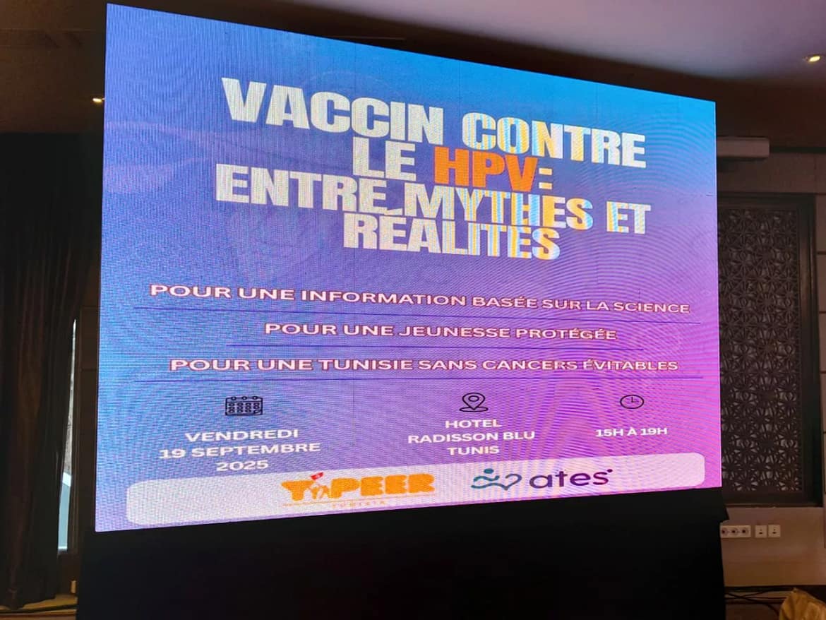 « اللقاح ضد فيروس الورم الحليمي البشري (HPV): بين الأساطير والحقائق » وذلك ببادرة من منظمة Y-PEER تونس وبالتعاون مع جمعية ATES.