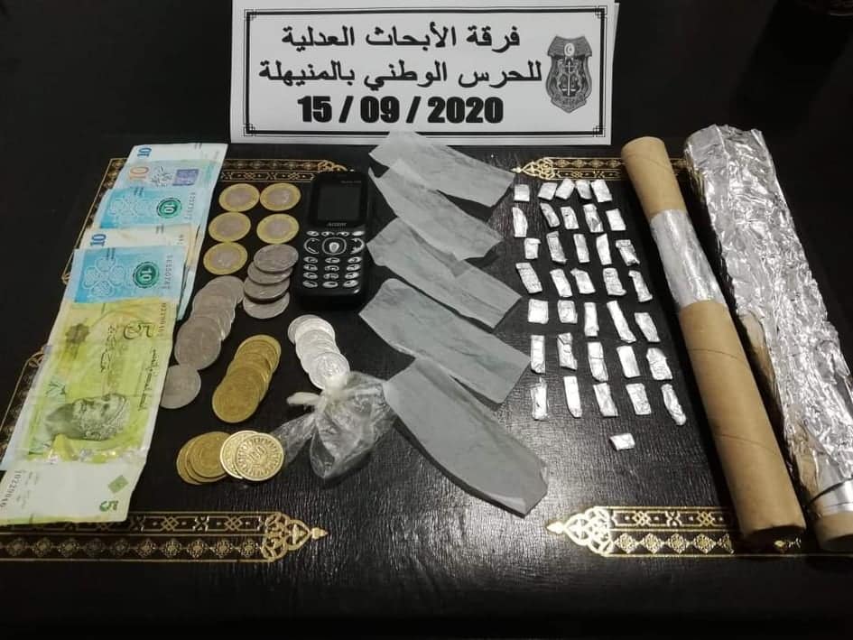 في إطار تصدي وحدات الحرس الوطني بمختلف ولايات الجمهورية لظاهرة ترويج المخدرات و للمنحرفين تمكنت فرقة الأبحاث العدلية للحرس الوطني بالمنيهلة ،على اثر توفر معلومات و بعد نصب كمين محكم وبحرفية وحنكة الأعوان تمكنوا من القاء القبض على شخص عمره 38 سنة و حجز لديه 36 قطعة من مادة “الزطلة” و مبلغا ماليا متأتيا من عائدات الترويج كما تم القاء القبض على شخص (مستهلك) تبين انه صادر في شأنه عدد02 مناشير تفتيش و محكوم عليه بالسجن لمدة 06 اشهر. باستشارة النيابة العمومية أذنت بالاحتفاظ بالمظنون فيهما الى حين استكمال الابحاث واحالتهم على انظار العدالة حسب ماأفاد به الناطق الرسمي باسم الادارة العامة للحرس الوطني العميد حسام الدين الجبابلي .