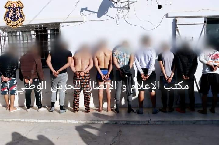 في إطار تعقب العناصر المفتش عنها و التي تهدد الأمن العام تمكنت وحدات تابعة لمنطقة الحرس الوطني بالتضامن معززة بحضائر تدخلات سريعة بإقليم الحرس الوطني بأريانة وبن عروس و حضيرة تدخل مركزي تابعة لفوج التدخل بنعسان و بعد إستشارة النيابة العمومية من مداهمة منازل المفتش عنهم و ضبط عدد 09 أنفار صادرة في شأنهم عدة مناشير تفتيش لفائدة وحدات أمنية و هياكل قضائية مختلفة من أجل تورطهم في قضايا مختلفة كما تم حجز كمية من مخدر القنب الهندي ، أقراص مخدرة و مبلغا ماليا متأتيا من عائدات ترويج المخدرات لدى أحد المفتش عنهم.