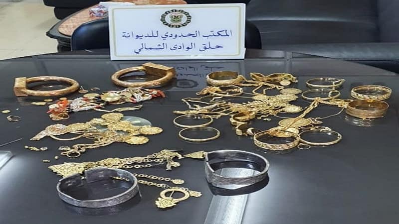 في إطار التصدي لمحاولات تهريب المعادن الثمينة عبر الحدود، تمكنت فرقة تفتيش المسافرين بالمكتب الحدودي للديوانة بميناء حلق الوادي الشمالي من حجز كمية هامة من المصوغ من الذهب تزن حوالي 1013 غرام متمثلة في فرادي وخلخال قدرت قيمتها ب92 ألف دينار اضافة الى كمية من المصوغ من الفضة تزن حوالي 765 غرام تم ضبطها بحوزة مواطن تونسي مقيم بالخارج قام بإخفائها داخل أغراضه الشخصية وذلك اثناء استعداده للمغادرة في اتجاه ميناء جنوة الإيطالي.