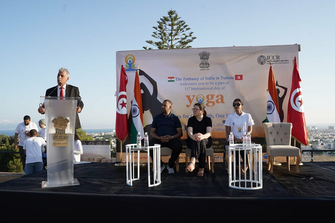 الرئيسية » سفارة الهند بتونس تحتفل باليوم العالمي لليوغا في قرطاج تحت شعار “اليوغا من أجل أرض واحدة وصحة واحدة”