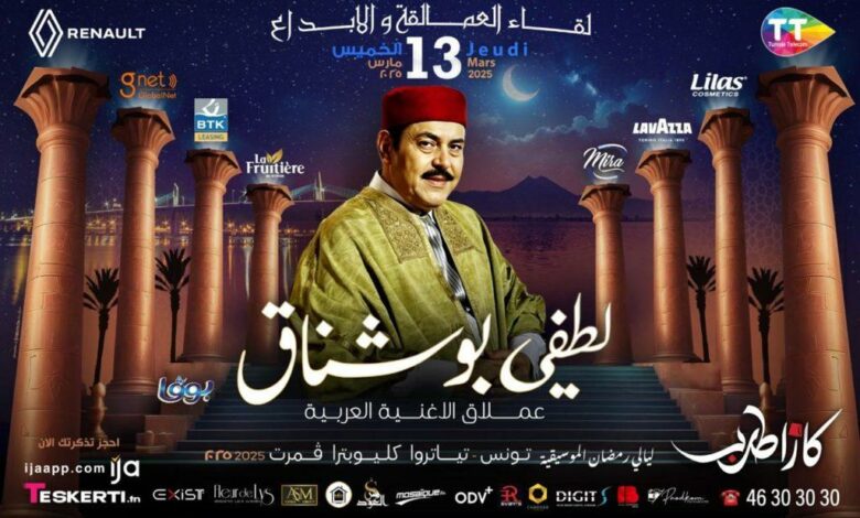 أما عشاق الطرب، فهم على موعد مع سهرة الفن الأصيل بامتياز يحييها عملاق الأغنية العربية لطفي بوشناق الخميس 13 مارس 2025 على الساعة 21:30 رفقة فرقة المايسترو » رياض بودينار » في عرض يمزج بين الإبداع والأصالة ويعيد الجمهور إلى روائع الطرب العربي الأصيل.، وللكوميديا نصيب من خلال عرض نجم الكوميديا كريم الغربي في سهرةٍ مليئة بالضحك يوم الأحد 9 مارس 2025.