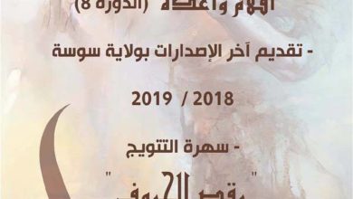 ينظّم الصالون الثقافي بسوسة الدورة الرابعة لملتقى قصيد الومضة تحت إشراف المندوبية الجهوية للثقافة والمحافظة على التراث بسوسة وبالتعاون مع…