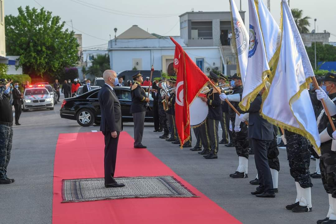 ولدى حلوله حيى رئيس الدولة العلم على أنغام النشيد الوطني، وقد كان في استقباله بالخصوص وزير الداخلية السيد هشام المشيشي، والمديرون العامون لمختلف الأسلاك. واطلع بالمناسبة على جاهزيّة واستعدادات الوحدات الأمنيّة، كما اطلع على ما يقوم به الفوج الوطني لمجابهة الإرهاب من مجهودات للمساهمة في مكافحة فيروس كورونا من ذلك بالخصوص توفير سيارة إسعاف مجهزة بكل المستلزمات ووضعها على ذمة أبناء الإدارة العامة لوحدات التدخل في تونس الكبرى ومختلف الجهات.