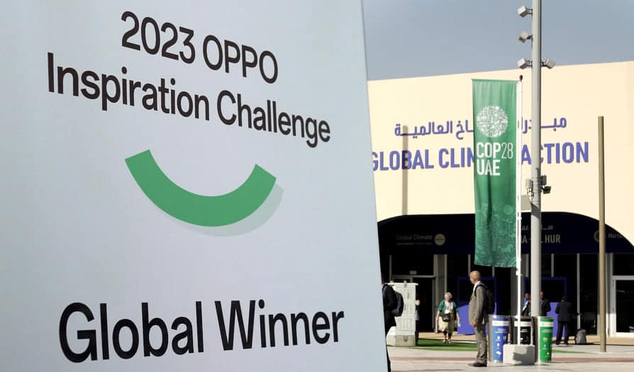 ففي إطار التزامها بمكافحة تغيّر المناخ، تحرص OPPO على تكثيف التّعاون مع مختلف الشّركاء في القطاع من خلال مبادرات تمّ إطلاقها مثل “تحدّي الإلهام” OPPO Inspiration Challenge، وهو برنامج مسرّع للابتكار أطلقه معهد أبحاث الشّركة سنة 2022، يستقبل العديد من التقنيات المبتكرة من مختصّي التّكنولوجيا حول العالم، حيث تلقّى البرنامج 687 مقترحا من 66 دولة ومنطقة، من بينها 40% تتعلّق بالتقنيات الّتي تفيد الإجراءات المناخيّة لسنة 2023. وخلال مؤتمر COP28، قامت الشّركة بدعوة أحد الفرق الفائزة، Bluepha Co., Ltd، وهي شركة ناشئة في مجال التّكنولوجيا الحيوية تعمل على تطوير منتوجات عضوية طبيعية قابلة للتحلّل لتحلّ محل استخدام البلاستيك في التعبئة والتغليف والاستخدامات المختلفة، وذلك بهدف تقديم التكنولوجيا الخضراء الخاصّة بها إلى جمهور عالميّ في هذا الحدث.