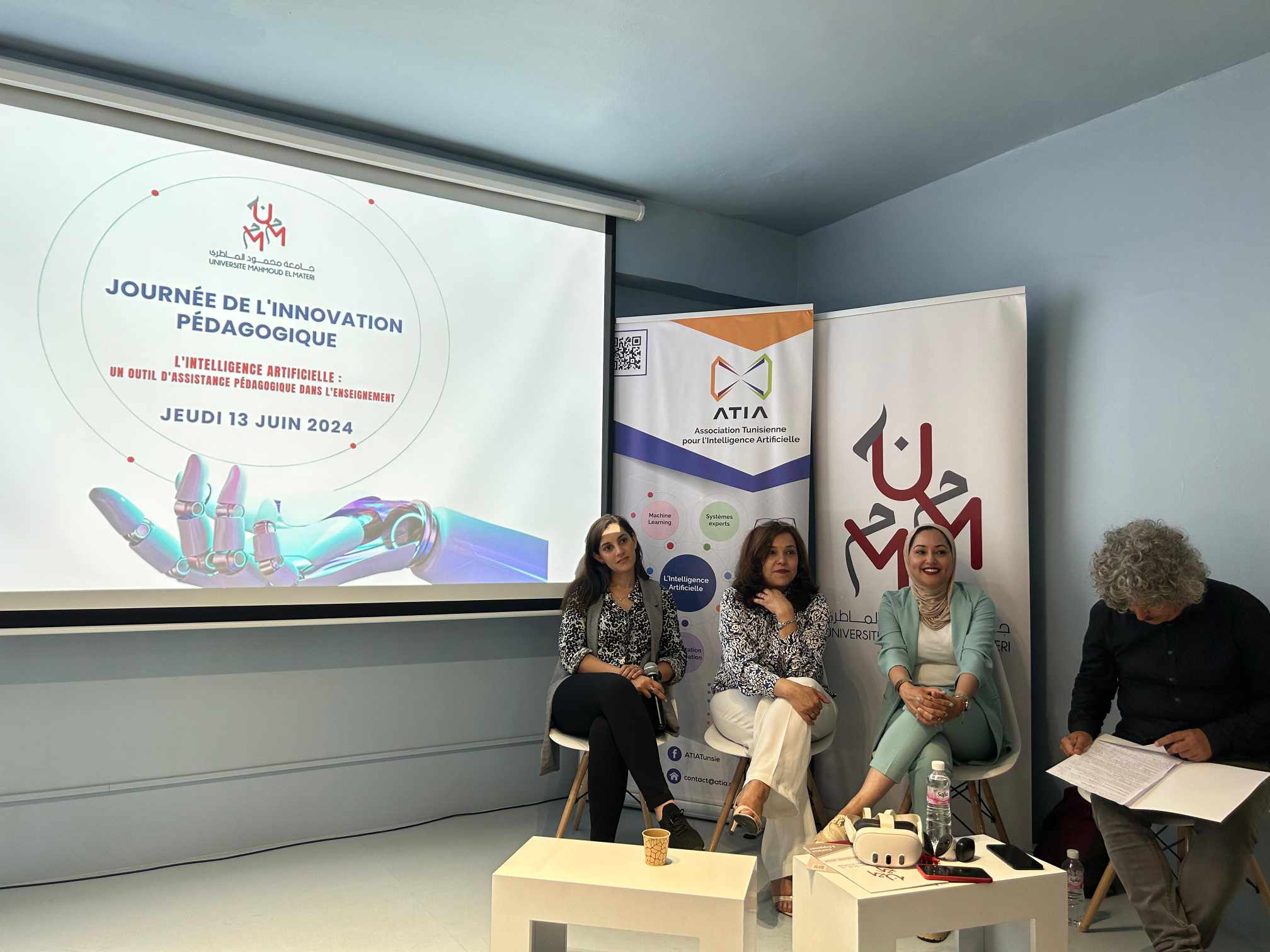 وللإجابة عن هذه الأسئلة، نظمت جامعة محمود الماطري بتاريخ 13 جوان 2024 بفضائها الثقافي “الفهرية” النسخة الثالثة من يوم الابتكار البيداغوجي الذي شهد مشاركة العديد من الخبراء والأساتذة الجامعيين. خلال مداخلاتهم، تحدثت كل من السيدة فاطمة سيالة، أستاذة مساعدة بالتعليم العالي ومستشارة في التقنيات الجديدة، السيدة نجلاء سطمبولي، مستشارة أولى في الرعاية الصحية ونظام الجودة والبحث السريري، والسيدة إيمان حمايدي، أستاذة في العلوم الصحية ورئيسة لجنة المحاكاة الرقمية، عن أهمية الذكاء الاصطناعي في جميع المجالات