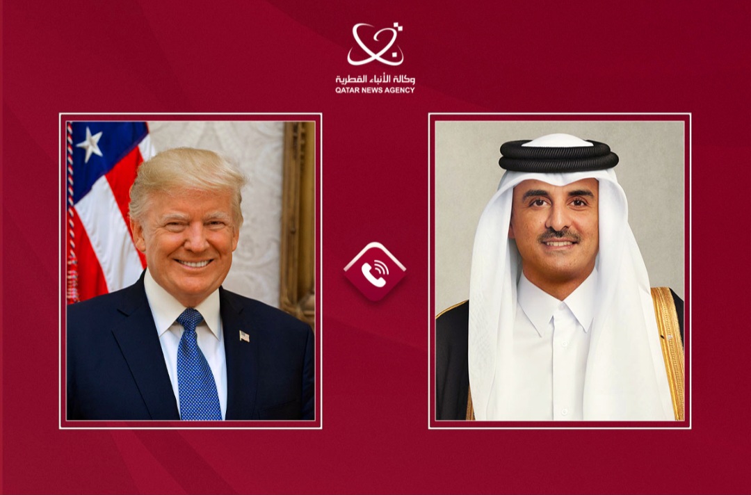 إتصال بين أمير قطر وترامب يؤكد أهمية التهدئة وتغليب الحلول الدبلوماسية: